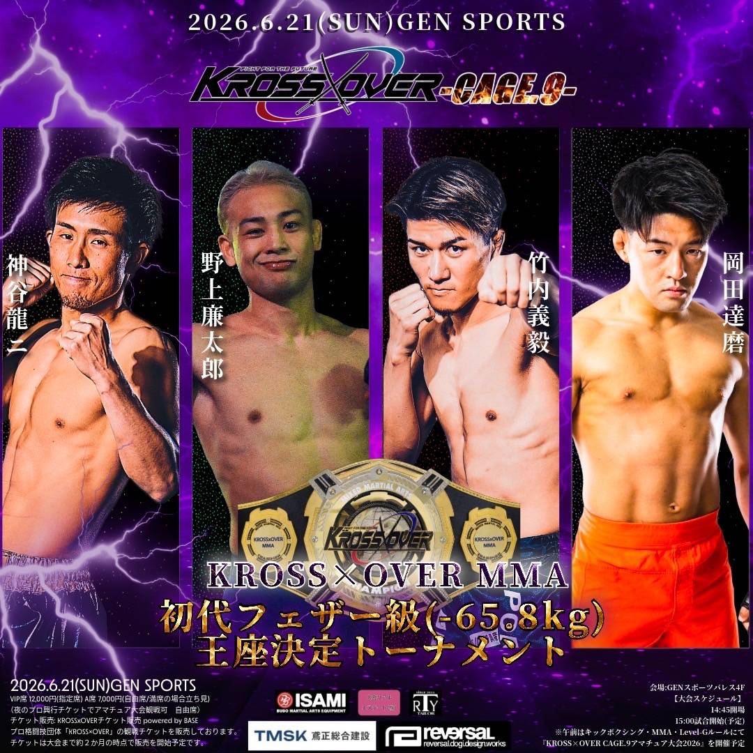 KROSS×OVER MMA 初代フェザー級(-65.8kg)王座決定トーナメント開幕!👑